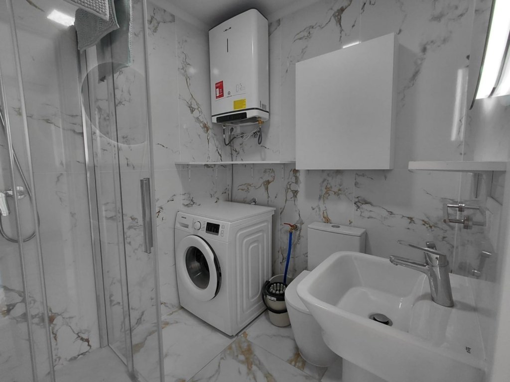 Cuenta con una superficie construida: 70 m², con una distribución muy cómoda y luminosa, amplio salón-comedor amplio con un sofá cama y cocina integrada, equipada con modernos electrodomésticos, cuenta con 2 dormitorios espaciosos, uno de los dormitorios con puerta corredera acristalada, 2 baños completos con acabados de calidad y lavadora. Armario empotrado.